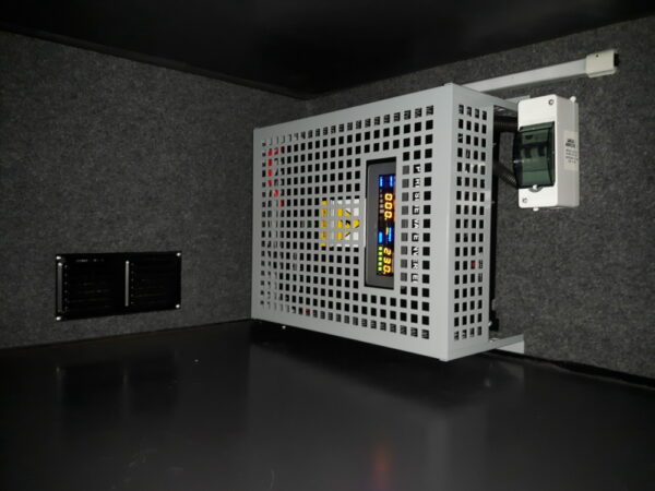 Montaż przetwornicy sinusoidalnej 230V w autokarze turystycznym. Gniazdka 230 V zabezpieczone bezpiecznikiem różnicowoprądowym